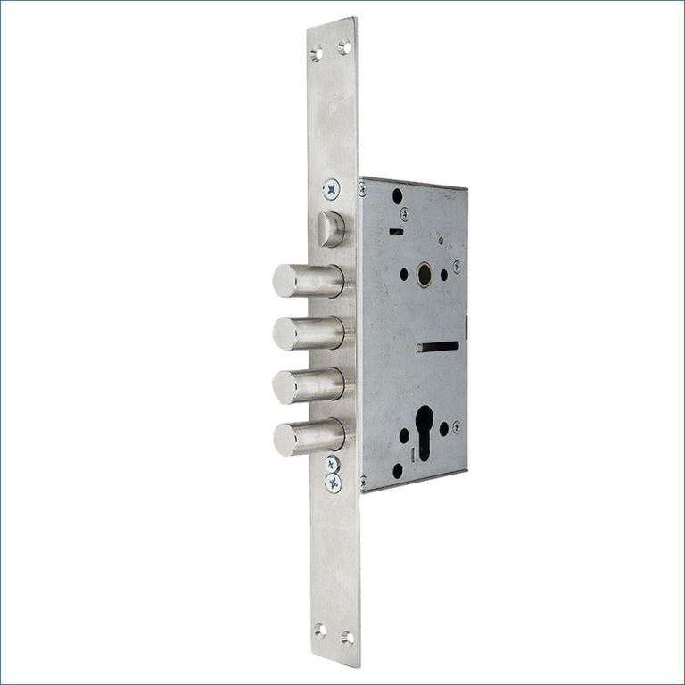 Межосевое расстояние замка ЗВ7 318.П в 85 мм позволяет подобрать к нему любую раздельную декоративную и защитную фурнитуру.